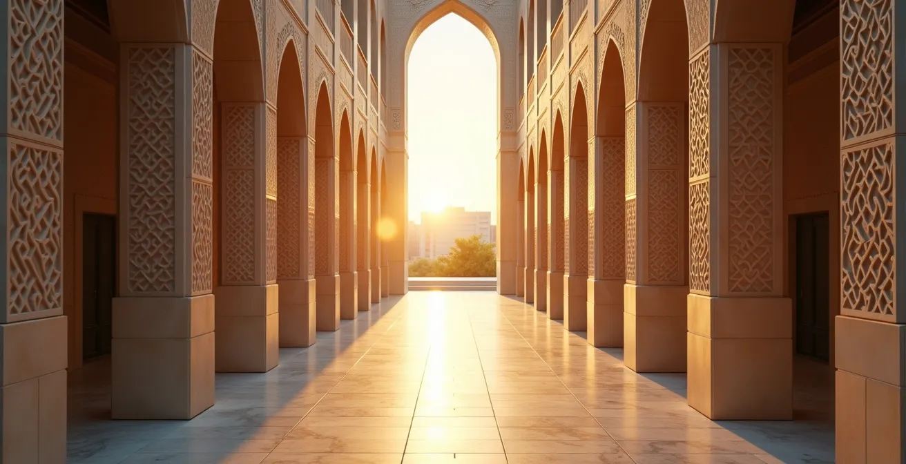 Esta atmósfera espiritual, donde la luz y la verticalidad juegan un papel clave, es el núcleo de la experiencia arquitectónica en un espacio sagrado.